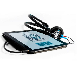 SHOEBOX 是验证的 iPad 听觉仪。 SHOEBOX 远不止便携式听觉仪,它以小巧的移动外形提供诊断精度和功耗。