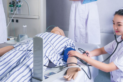 本产品特点在于,能够通过综合模拟病人设置产生各种异常生命体征,实现结合临床病例进行生命体征测量评估的情境式教学系统。综合模拟病人具有完整的全身骨骼结构,系统软件分为教学、训练、考核三种模式,教学内容丰富,体温、脉搏呼吸、血压均可设置临床常见的各种异常生命体征,并具备评价考核功能。