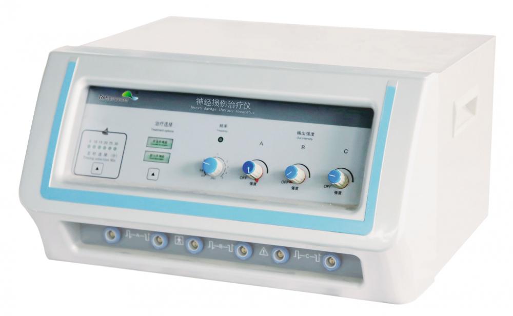 神经损伤治疗仪又名神经肌肉电刺激仪,是应用低频脉冲电流刺激失神经支配的肌肉,降低肌肉纤维变性,减缓肌肉失神经支配性萎缩,促进血流并保持肌肉营养,促使失神经肌肉和重新接受神经支配的肌纤维肥大强化,较快提高肌肉张力。